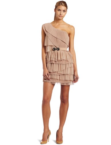 BCBGMAXAZRIA Womens One Shoulder Tiered Tulle Dress